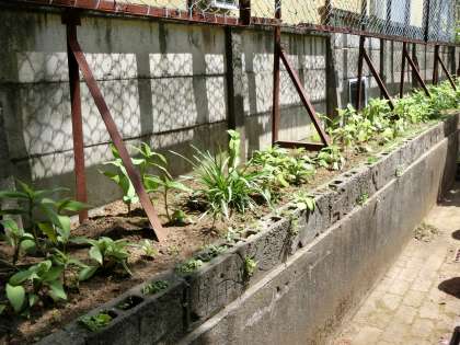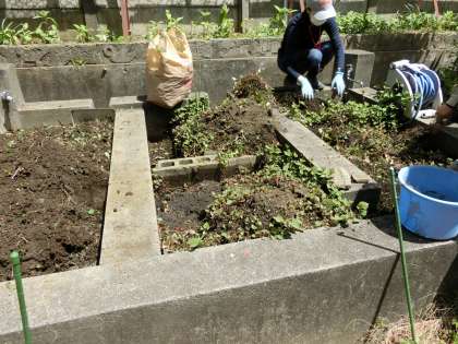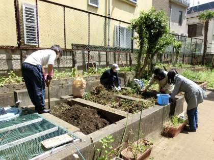 仮校舎の北側には中庭がありますが、