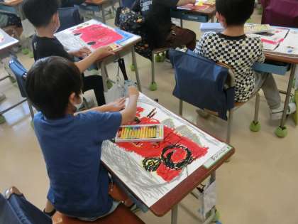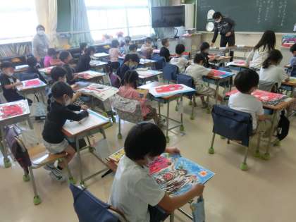 1年生 図画工作 消防写生会の仕上げ