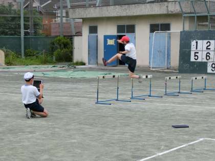 タブレットを活用したハードル走の学習をしていました。