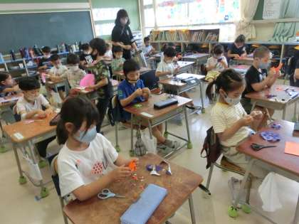 1年生、図工「ちょっきんぱで あそぼう」の学習です。