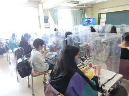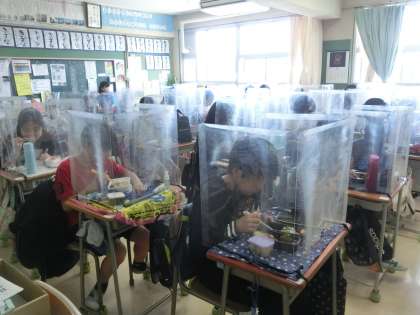 学校は、通常授業でしたが、昼食は、お弁当。
