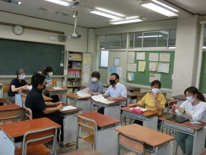 感染症防止対策として、各教科1名の代表者が集まりました。