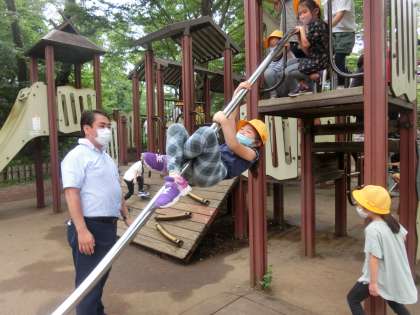 包括支援員の佐藤先生からは、“アスレチックにチャレンジ”