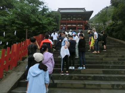 源実朝暗殺の舞台となった大石段13段目を踏みしめたり、