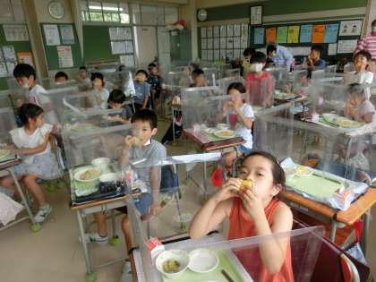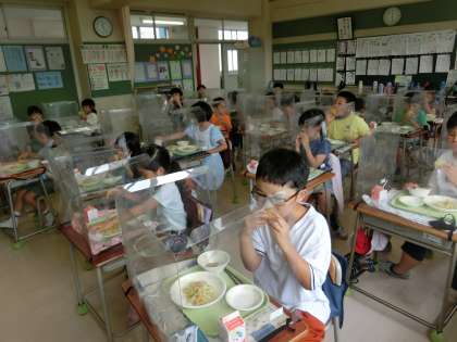 給食で、さっそくガブッ!