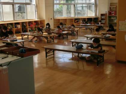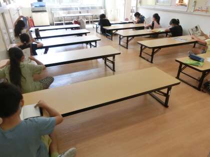 みんな行儀よく座って、読書をしたり、ドリルを解いたり、