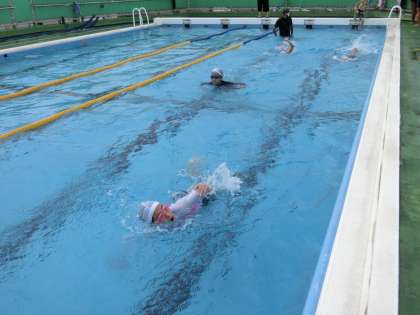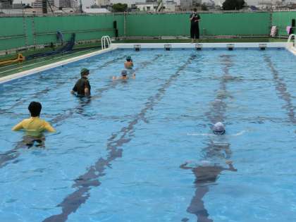 25mをかっこよい泳ぎ方で泳ぎ切る子、