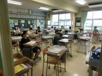 教室は、いつもの半分の子供たちで閑散としていますが、