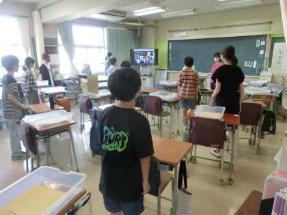 教室で日直さんが「朝の会を始めます。起立!」と言うと