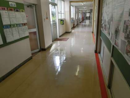 夏休みの間にワックスがけをして、今廊下はピカピカです。