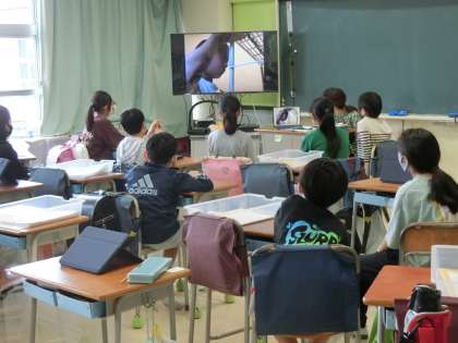 各家庭の子供たちは、画面上で相互に伝え合っていました。