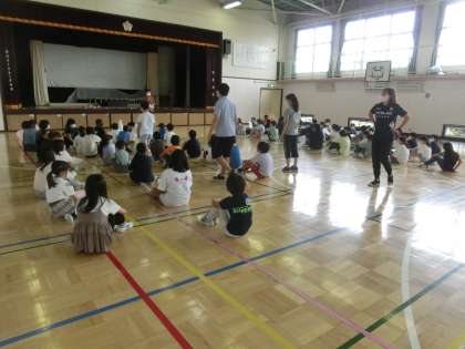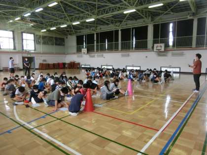 給食の配膳の時間帯のリレー選手の練習が行われます。