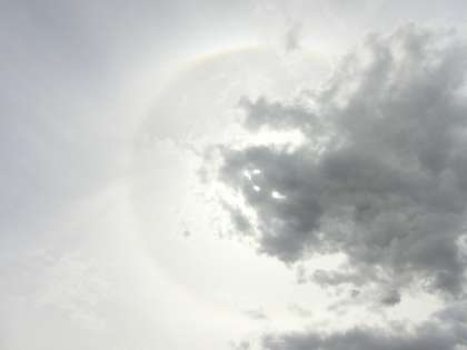 ハロは通常の虹とは違って上空の薄雲を構成する氷の粒によって