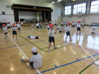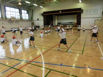体育館での学年練習です。
