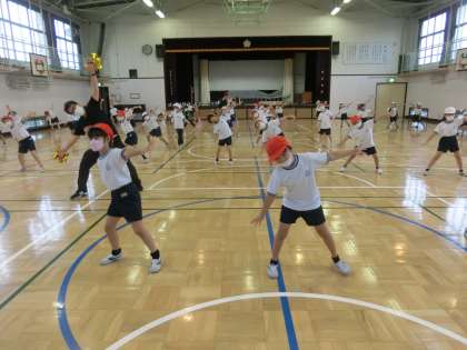 1年生、表現種目「WANIMA やってみよう かな?」体育館で!
