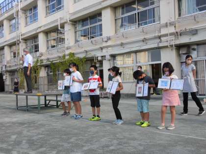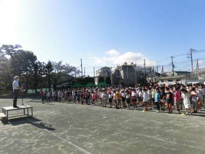 今日は天気も良く、久しぶりに全校児童が校庭に集合しました。