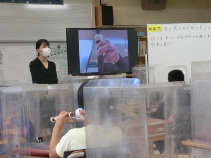 「ソ」の指遣いをしたリコーダーを見せ合いました。