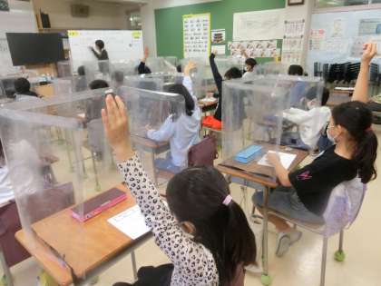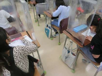 「周りの子と確認しましょう」という指示を受け、
