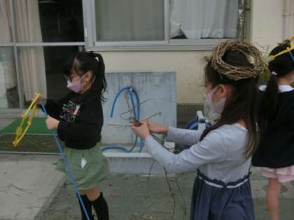 王子様、お姫様が自慢げにリースを見せ合っていました。