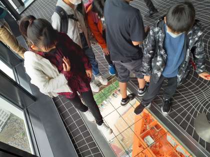 でも、地上までは、はっきり見えて、みんなが下をのぞいています。