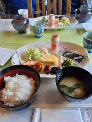二日目の朝食は、焼き鮭や肉団子、納豆などです。