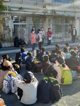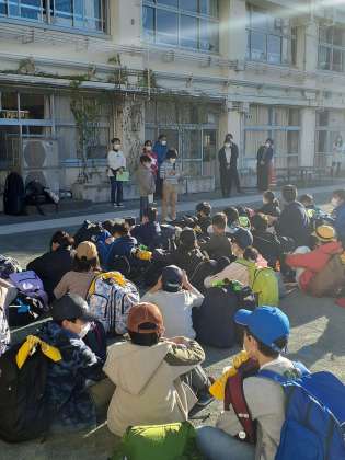 5年生、いよいよ川場移動教室で川場村に向けて出発です。