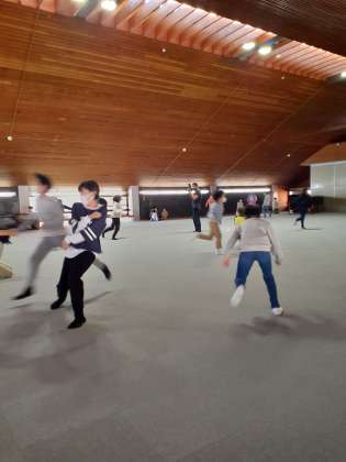 川場移動教室、午後の最初のイベントです。ビレッジ2階の村の会堂に全員集合。