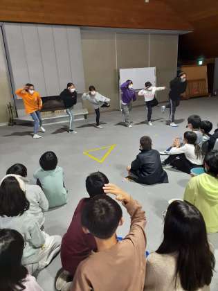 男子グループのひげダンスから始まり、手品あり、クイズあり。合気道や切れ切れヒップホップダンスと、大盛り上がりのひとときでした。