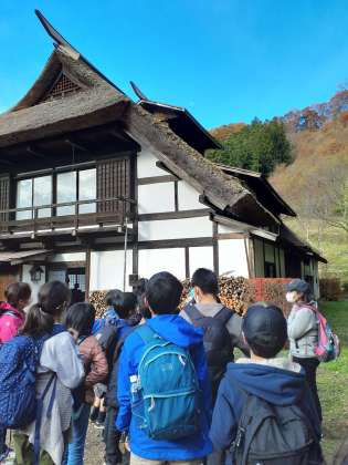 古民家の中を見せていただいたり、赤城山系を望む絶景に感激したりしながら、村巡りを進めています。