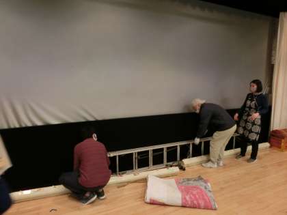 大道具の準備、背景の準備、会場の準備など