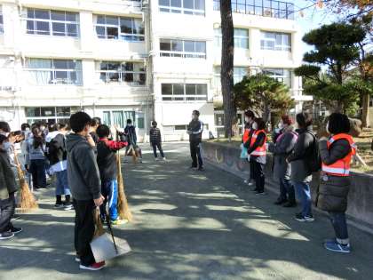 一緒に校庭の清掃活動をしてくださいました。作業終了後、