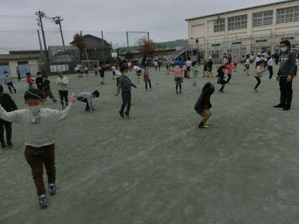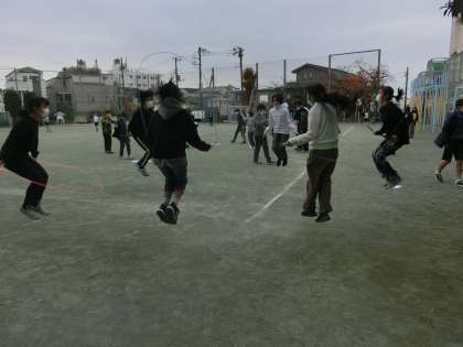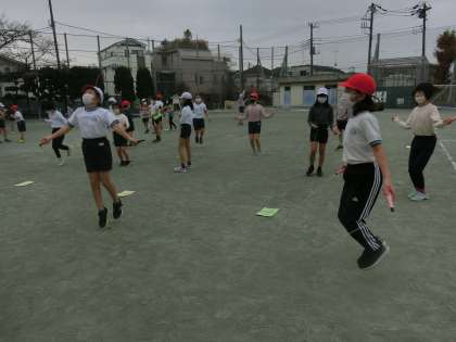 約5分間の短なわタイムをそれぞれの跳び方で楽しんでいました。