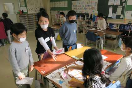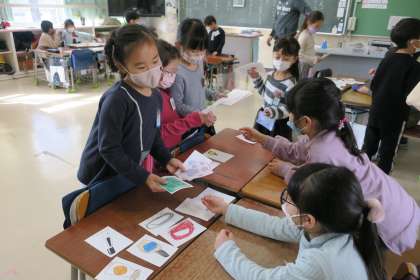 お店屋さんやお客さんの話し方についても考えながら、楽しく交流しました。