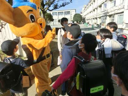 「ピーポ君をさがそう!」のスタートは、まず校門で。