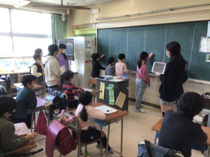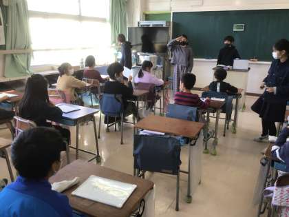 なので今回は班ごとにその6年生が考えた活動を行いました。「ジェスチャーゲーム」、「これは何でしょうクイズ」、「数字あてゲーム」、「いつどこでだれがなにをしたゲーム」