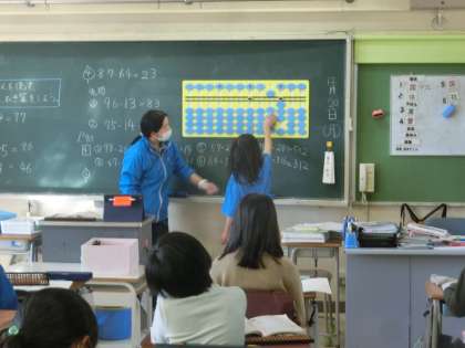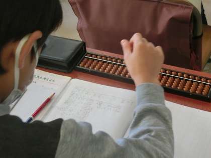 3年生で、そろばんの計算の仕組みを学んだ子供たち、