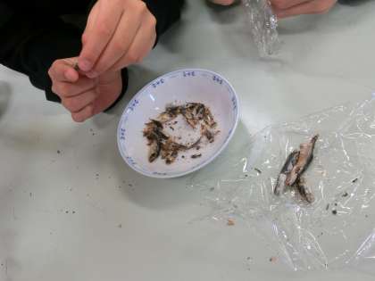 校舎裏庭の田んぼで育て、籾摺りまで体験したお米です。