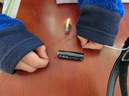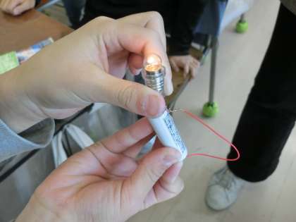 じゃあ、この豆電球に明かりをつけてみましょう!