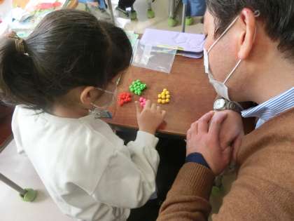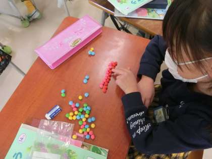 「にー、しー、ろー」と2個ずつの塊で数えている子、