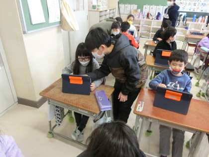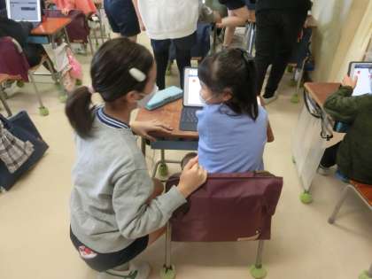 1年生のロイロノートを手伝う6年生、素晴らしい!