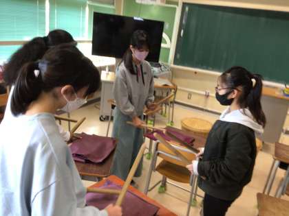 卒業までのカウントダウンが40日を切り、最高学年としての役割を5年生に引き継ぐ時期になりました。24日から八木節の和太鼓と、樽太鼓の練習がスタートしました。6年生が見本を見せ、手を叩いて拍子をとり、口三味線でリードをし・・・。5年生の太鼓がかなり「さま」になってきました。