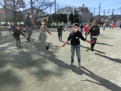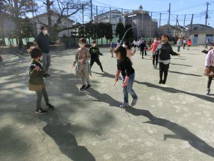 約5分間の短なわタイムをそれぞれの跳び方で楽しんでいました。