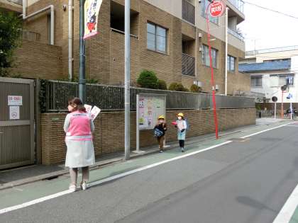 隊員の皆様も、子どもたちが歩道からはみ出ず、