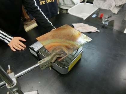 銅の板や棒にロウを塗って、熱が伝わる様子を
