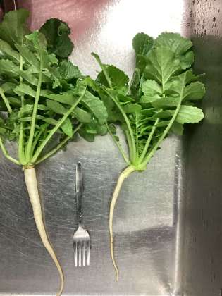 今日は、2年生が育てた、大根と大根葉をごはんに混ぜました。