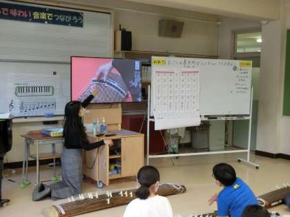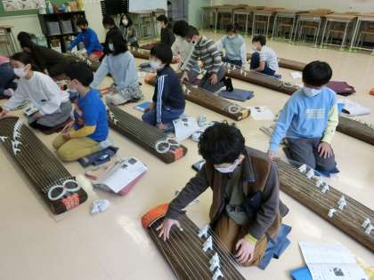 4年生は今、日本の伝統楽器「琴」の学習をしています。