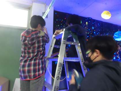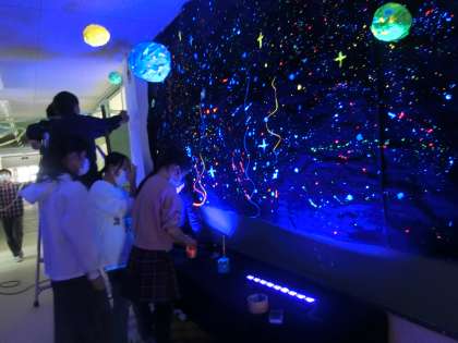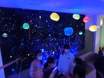 壁一面の銀河を思わせるような蛍光絵具のペイントが