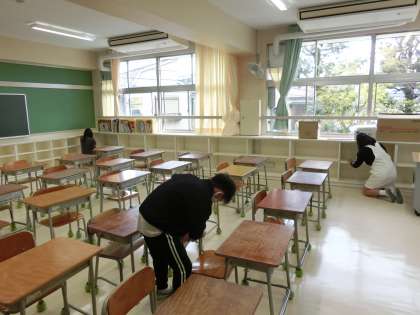 1年生のために、心を込めて、机やロッカーを拭いたり、