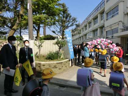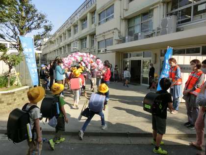 1年生の集団登校には、世田谷区役所の方や、