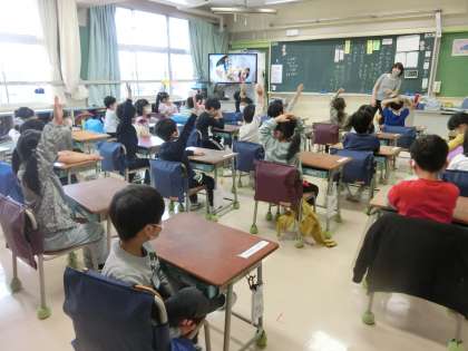 1年生 手を挙げて、自分の意見をしっかり伝えています